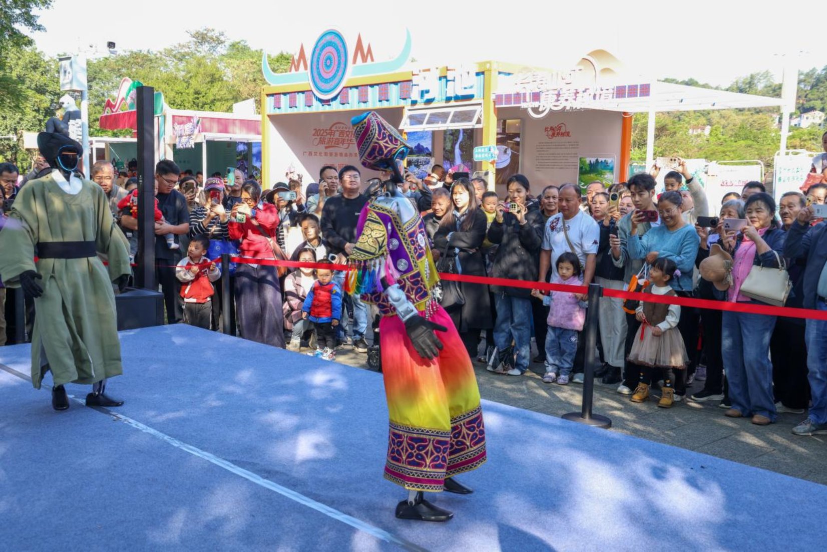 广西文化和旅游精品形象展内,丰富多彩的展演吸引众多游客驻足