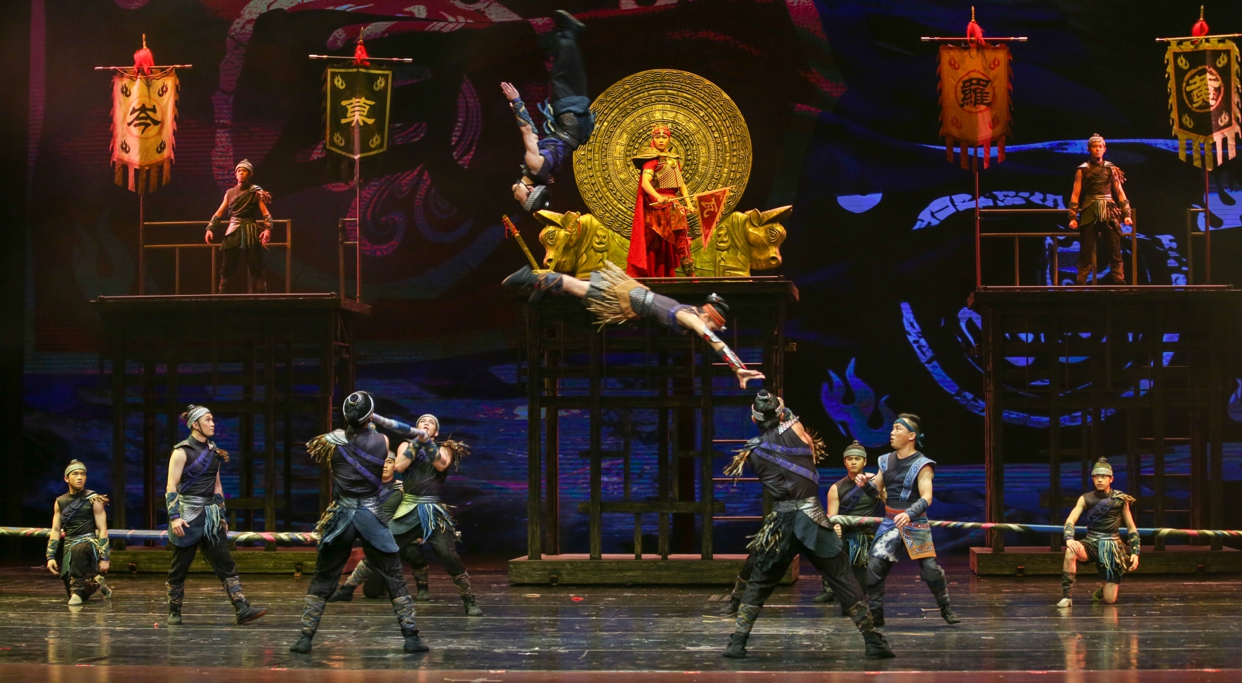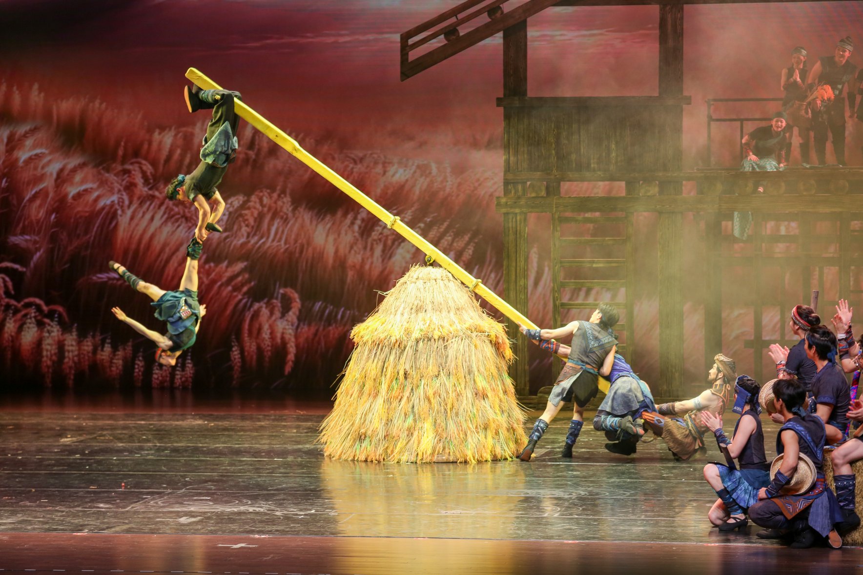 在近100分钟的演出中,演员们以抖杠、柔术、皮条等精湛杂技技艺为载体,每一个动作、每一次翻滚都饱含力量与情感,将“俍兵精神”诠释得淋漓尽致。剧目在艺术呈现上实现多重创新突破,将醒狮、壮拳、打磨秋等广西特色民族元素与杂技技艺深度融合,借助智能图像处理、互动投影等前沿科技,搭配壮族铜鼓、嘹歌与现代Hip-hop碰撞而成的独特音乐,以及植入壮锦、木棉花、绣球等文化符号的精美舞美,打造出沉浸式历史场景,既带来震撼的视觉冲击,又蕴含深厚的文化底蕴,为观众呈现一部集思想性、艺术性与观赏性于一体的精品力作。