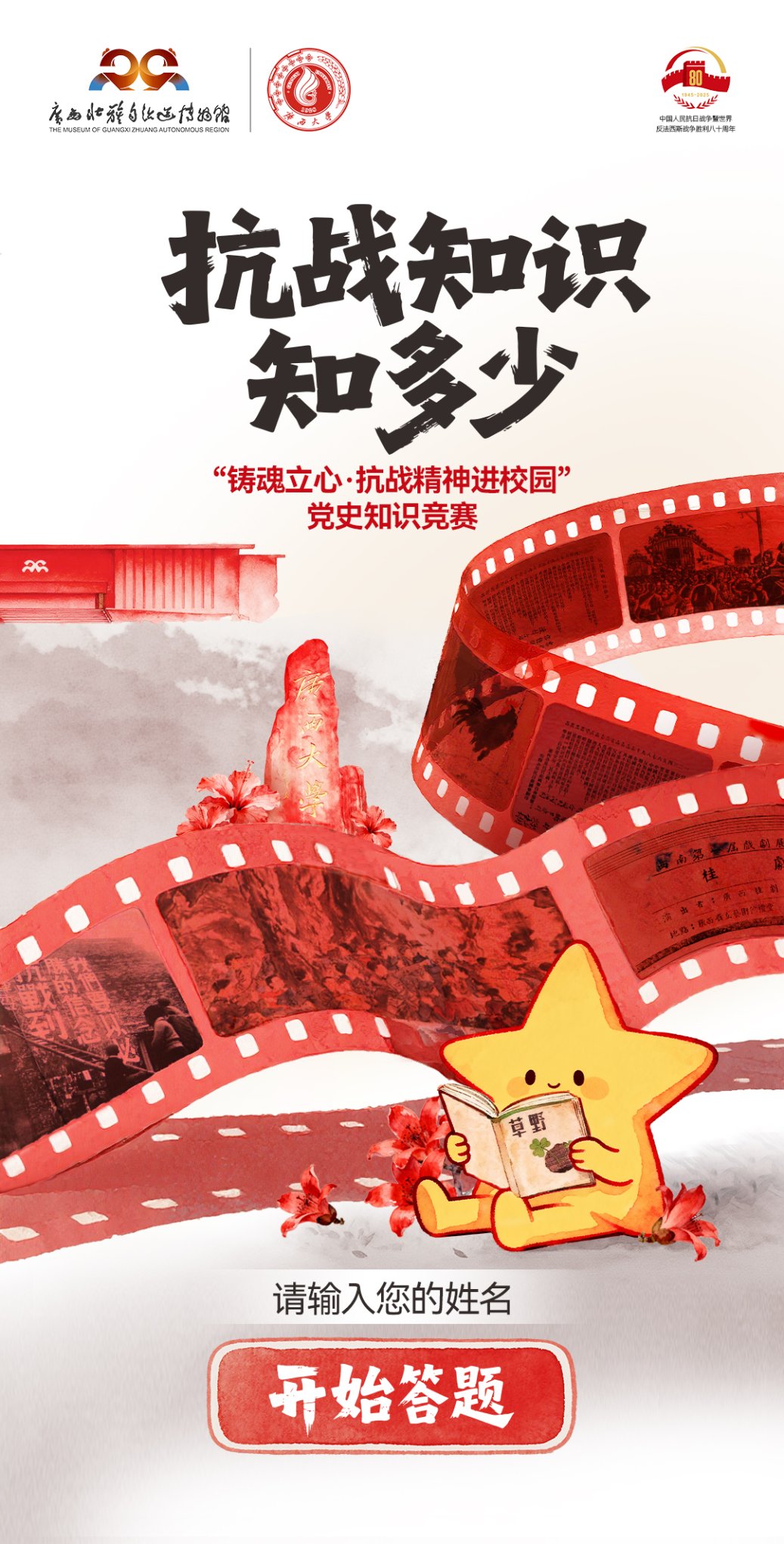 在内容创新与实践落地层面,活动以广西博物馆“铸魂立心御外侮——广西文化抗战特展”为核心载体,精心打造“七个一”系列革命文物教育矩阵,凸显“可观、可感、可参与、可传承”的鲜明特性。一是革命文物专题展览进校园,精选抗战文物图片、史料文案与英雄故事,让革命文物走出馆舍“零距离”触达青年;二是专家讲座进校园,邀请博物馆专家开展《烽火文心:广西文化抗战文物中的“匹夫有责”》等专题讲座,深度解读八桂大地文化抗战的精神内核;三是场馆专题学习,通过“沉浸式观展+主题工作坊”,帮助学生完成从“触摸历史”到“感悟精神”的升华;四是组建“南疆薪火我来传——广西大学革命文物青年讲解队”,通过专业培训培育革命文物讲解青年骨干,构建起红色基因传承的青年梯队;五是“革命文物背后的红色故事”主题宣讲,从革命文物“小切口”讲述家国情怀“大故事”;六是开展知识竞赛,“抗战知识知多少”竞赛通过“线上初赛+线下擂台赛”的模式,以赛促学深化青年对广西抗战史的认知;七是设计主题文创,馆校协作产出一批兼具思想性与艺术性的文创成果,实现革命文化资源的创造性转化。系列活动不仅丰富了高校思政教育的内容与形式,更推动青年学子在实践中厚植爱国情怀、锤炼责任担当,累计覆盖师生超万余人次,形成了“实践育人、精神铸魂、成果转化”的良好效应。