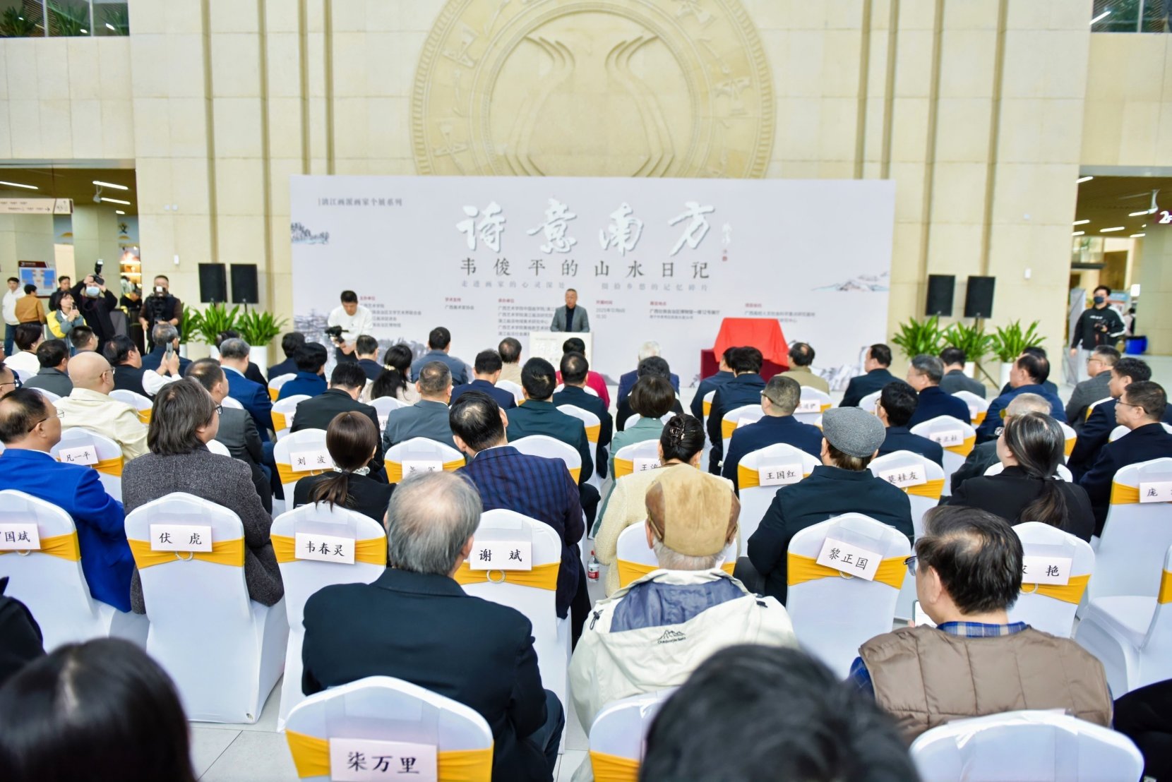 “诗意南方——韦俊平的山水日记”画展于2025年12月6日在广西博物馆陈列大楼一层12号展厅开幕。该展览由广西艺术学院、广西壮族自治区文学艺术界联合会、广西漓江画派促进会、广西壮族自治区博物馆联合主办,共计展出著名画家韦俊平近年来创作的112幅山水佳作。
