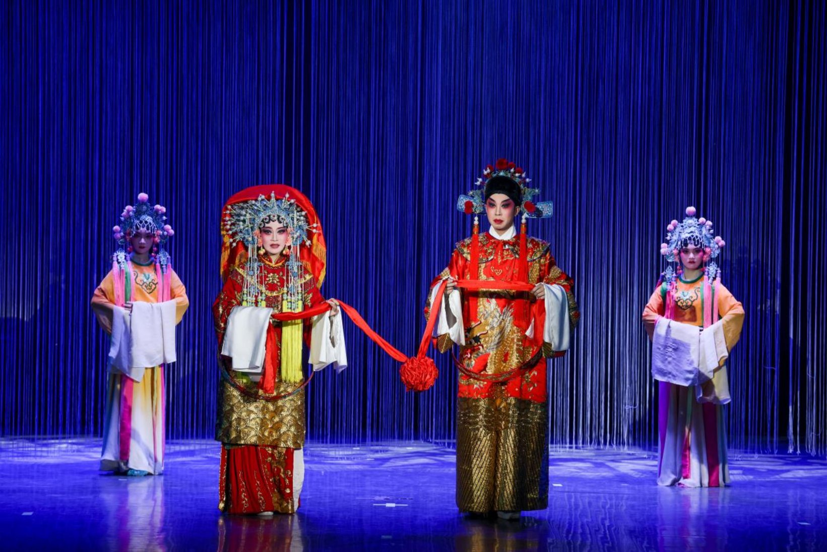 本次活动由自治区文化和旅游厅指导,广西艺术学校主办,旨在活化传承非物质文化遗产,彰显八桂大地深厚的文化底蕴与独特魅力,全面展现艺术教育与非遗传承深度融合的丰硕成果。演出节目囊括国家级非遗粤剧经典选段《帝女花·香夭》、桂北戏曲明珠彩调《王三打鸟》《刘三姐》片段,以及壮族天琴弹唱、玉林长绸木偶戏、广西地方民间舞蹈等本土特色艺术形式。