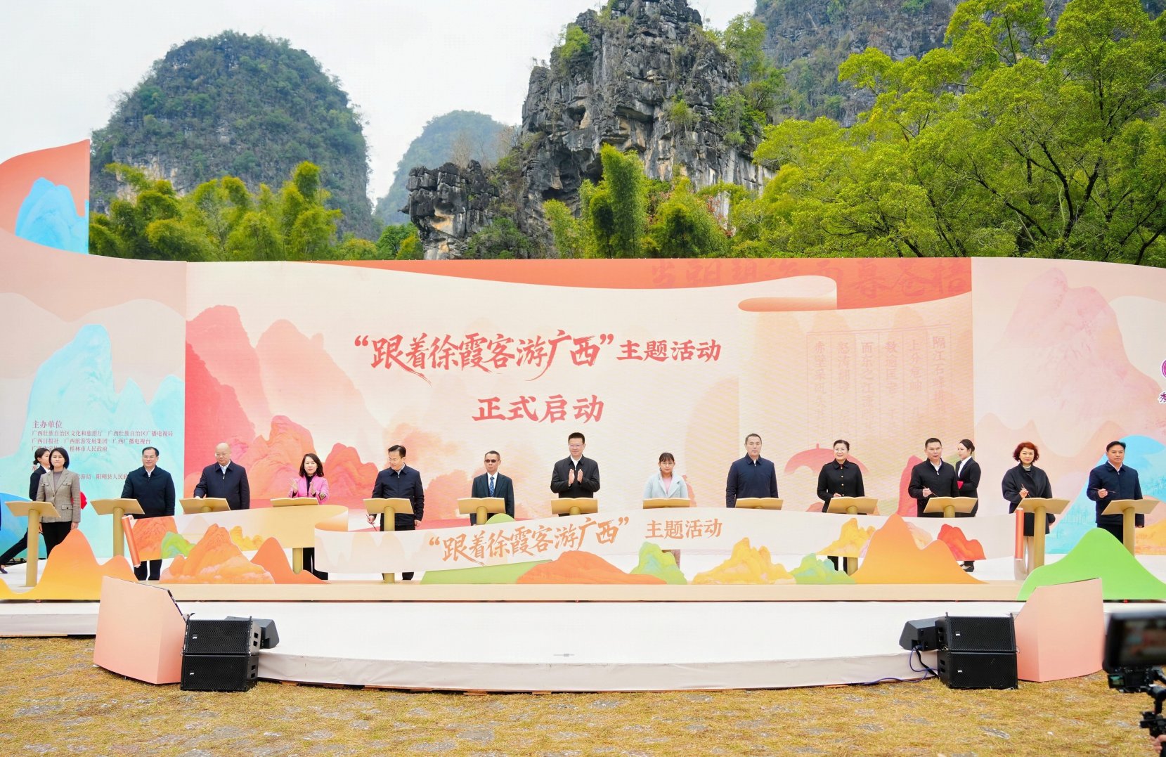 1月5日,正值中国明代伟大地理学家、旅行家、探险家、文学家徐霞客诞辰439周年,由自治区文化和旅游厅联合自治区广播电视局、广西日报社、广西旅游发展集团、广西广播电视台、广西作家协会、桂林市人民政府共同主办的“跟着徐霞客游广西”主题活动在阳朔县启动。自治区副主席胡帆、老挝驻南宁总领事翁巴努·西巴色、缅甸驻南宁总领事馆商务参赞高凯珏、桂林市市长卢新华、自治区人民政府副秘书长崔峻以及自治区文化和旅游厅党组副书记、副厅长林霖等领导嘉宾出席相关活动。