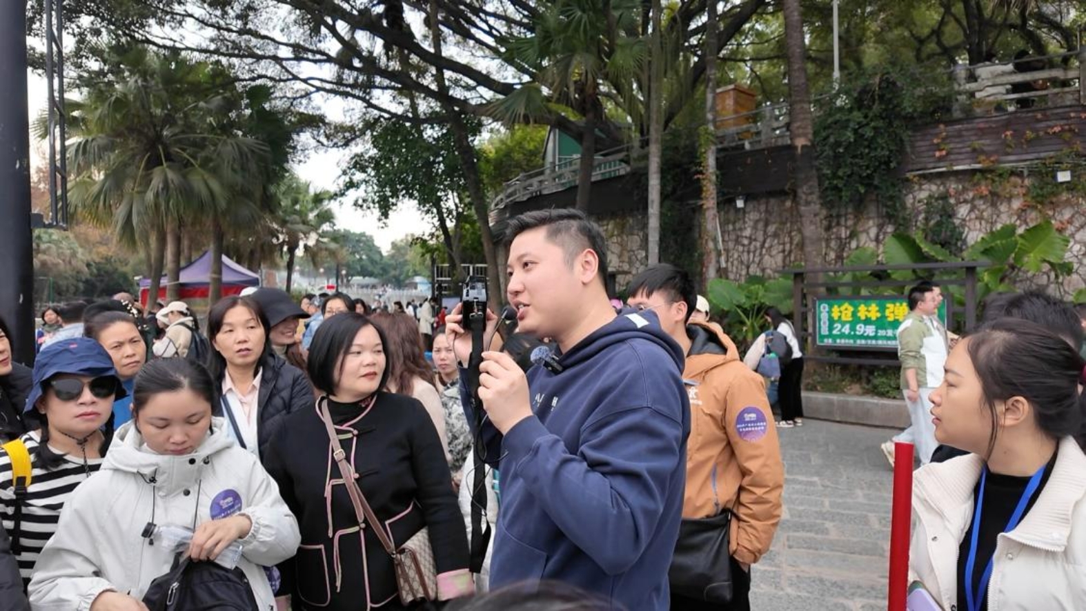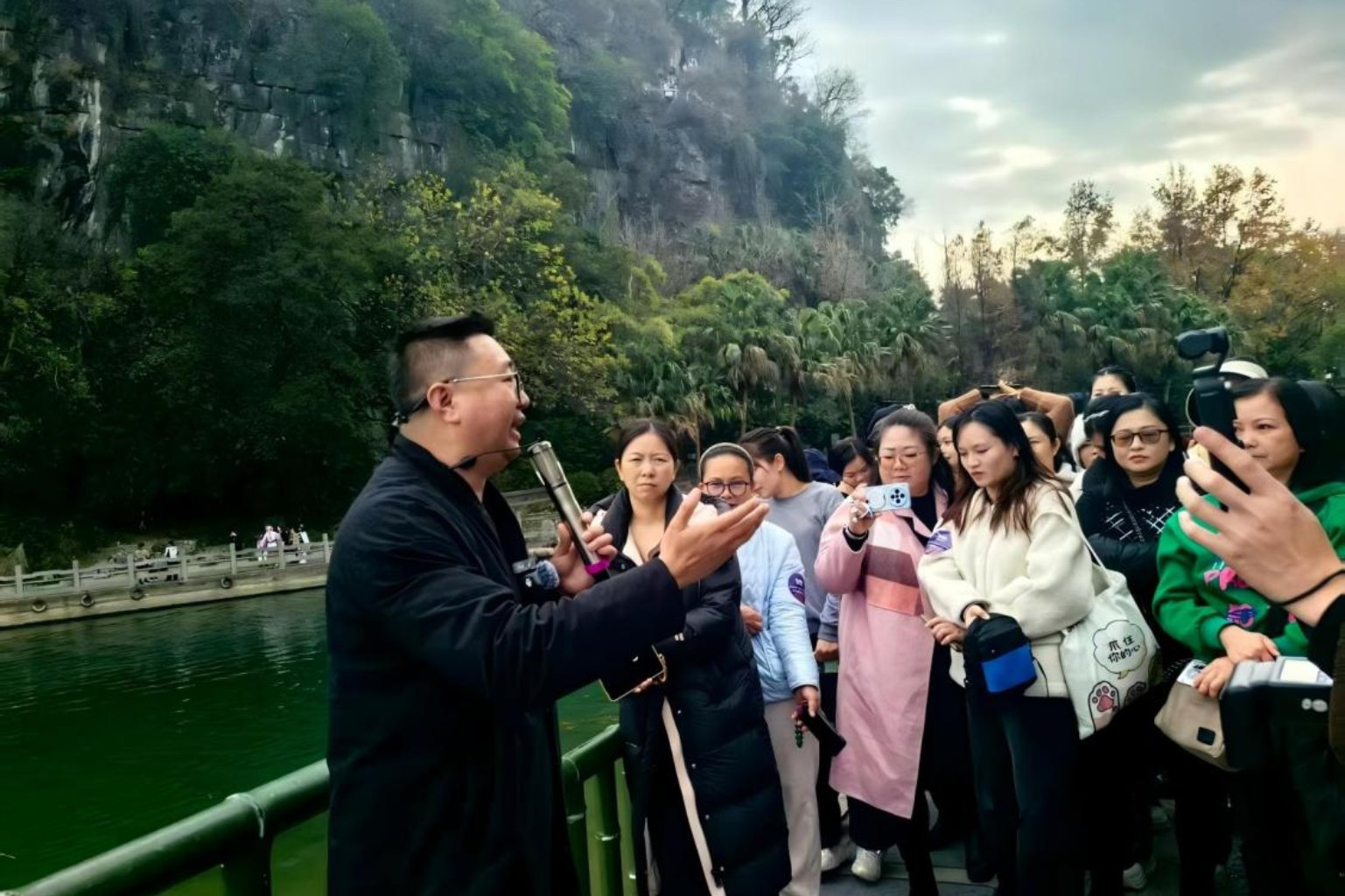 国家高级导游年小东、张珊在桂林市象鼻山景区带队开展实景观摩与带团场景运用演练