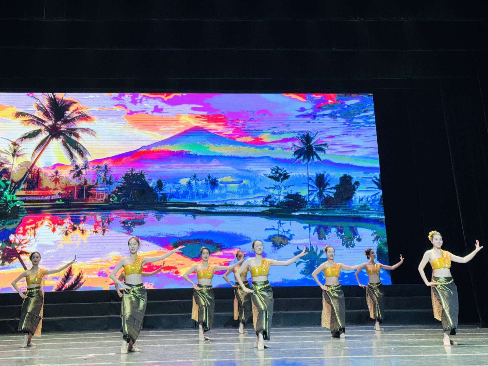 1月9日晚,2026年广西群众艺术馆文化志愿服务系列活动之“民族风·东南亚情”广西外国语学院艺术学院音乐舞蹈专场演出在该馆明星剧场上演。