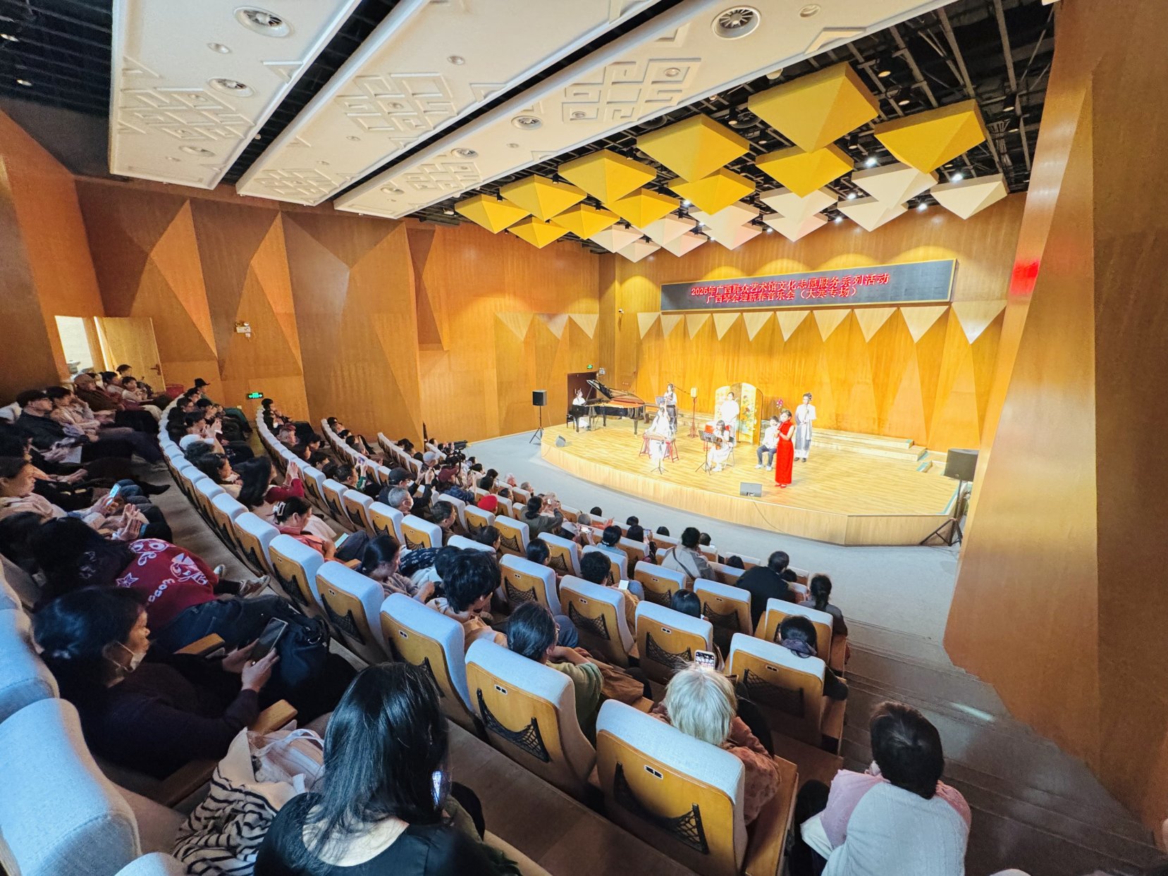广西民族管弦乐学会古琴专业委员会的演奏家、古琴爱好者、青少年演奏者与文化艺术界老前辈、老专家们齐聚一堂,以指尖清音诠释节气意蕴,用千年古琴之声传递新春期盼,为现场群众献上了一场融合传统节气、古典文化与高雅艺术的视听盛宴。