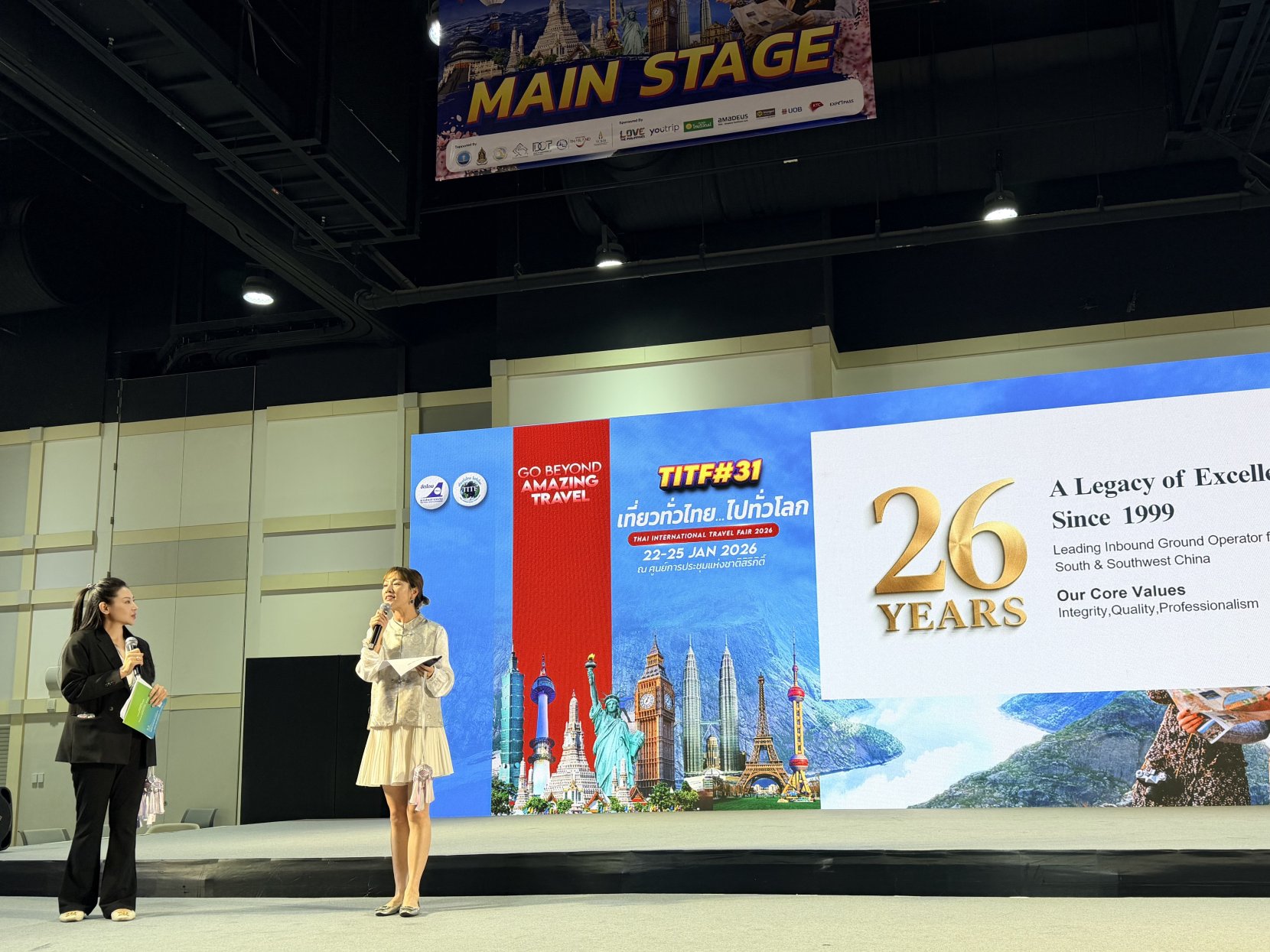展会期间,广西中国国际旅行社、广西零距离国际旅行社、桂林假期之旅旅行社、桂林中国国际旅行社等4家参展企业,在主舞台和“你好!中国”展区举办多场文旅推介活动,全面介绍了广西的自然山水、民族风情、特色美食等丰富的文化旅游资源,以及免签政策、便利交通等入境便利条件。同时,推出山水文化经典之旅、边境探秘之旅、长寿康养之旅等特色旅游线路产品,精准匹配泰国游客消费需求。活动现场通过互动问答、文创小礼品派发等形式调动氛围,观众反响热烈,多家泰国旅行社表达合作意向,为后续合作落地创造了有利条件。