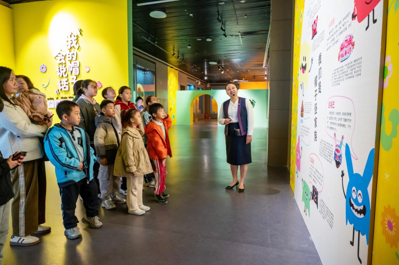 活动伊始,家长和孩子们首先参观了广西民族博物馆新春特展“我的帽子会说话——广西传统童帽文化展”。孩子们在博物馆讲解员覃婷的带领下,满怀好奇地探索了各民族的传统童帽文化,通过观赏虎头帽、鱼形帽、莲花帽等珍贵文物展品,深入了解每一顶童帽背后所蕴含的长辈对孩子的“爱与守护”。覃婷表示,希望孩子们在此次活动中,体会到妈妈一针一线为他们缝织出的“温柔与关怀”,明白尽管父母与他们暂时分别,但牵挂和思念始终萦绕心间。