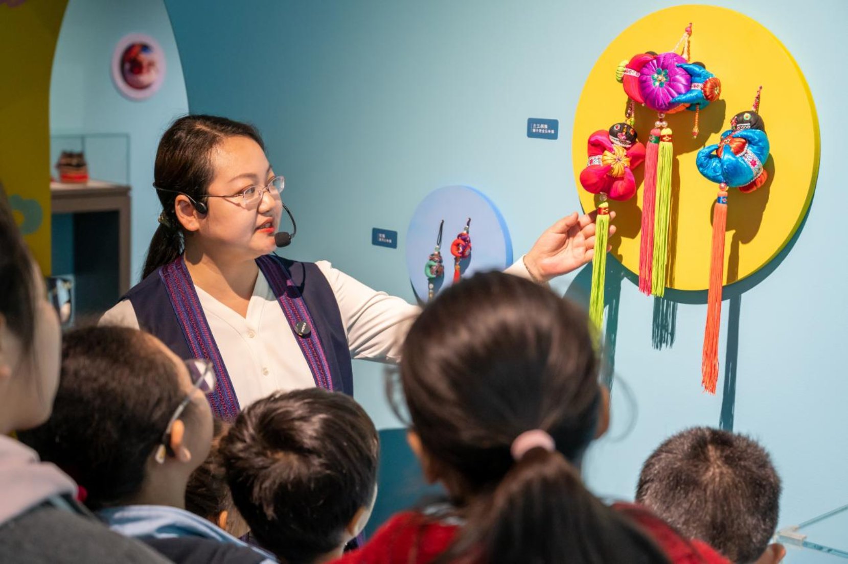 活动最后,孩子们还在博物馆里参与了五色糯米饭拼贴画DIY和背篓投绣球的互动体验。这场游园会不仅是一次单纯的非遗体验,更是连接亲情的纽带。