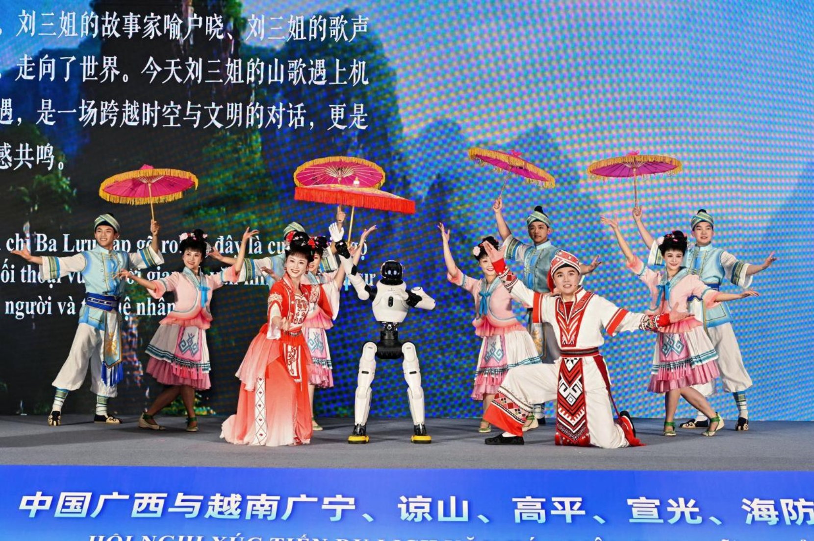 推介会在充满科技感的AI机器人表演中拉开序幕。广西壮族自治区文化和旅游厅党组副书记、副厅长林霖在致辞中指出,广西与越南山水相依、文脉相融,双方在旅游文化领域互动紧密、成果丰硕。林霖表示,本次推介会融合AI展示、线路图示、文艺表演等形式,旨在共同推广中越边境特色旅游产品,推动客源互送、市场共拓。她还特别强调,北京、上海、广东作为重要旅游枢纽,是连接国内外市场的关键节点,期望构建“京沪穗—广西—越南”双向互促的合作新模式,让跨境旅游成为共享资源、共赢发展的生动实践。