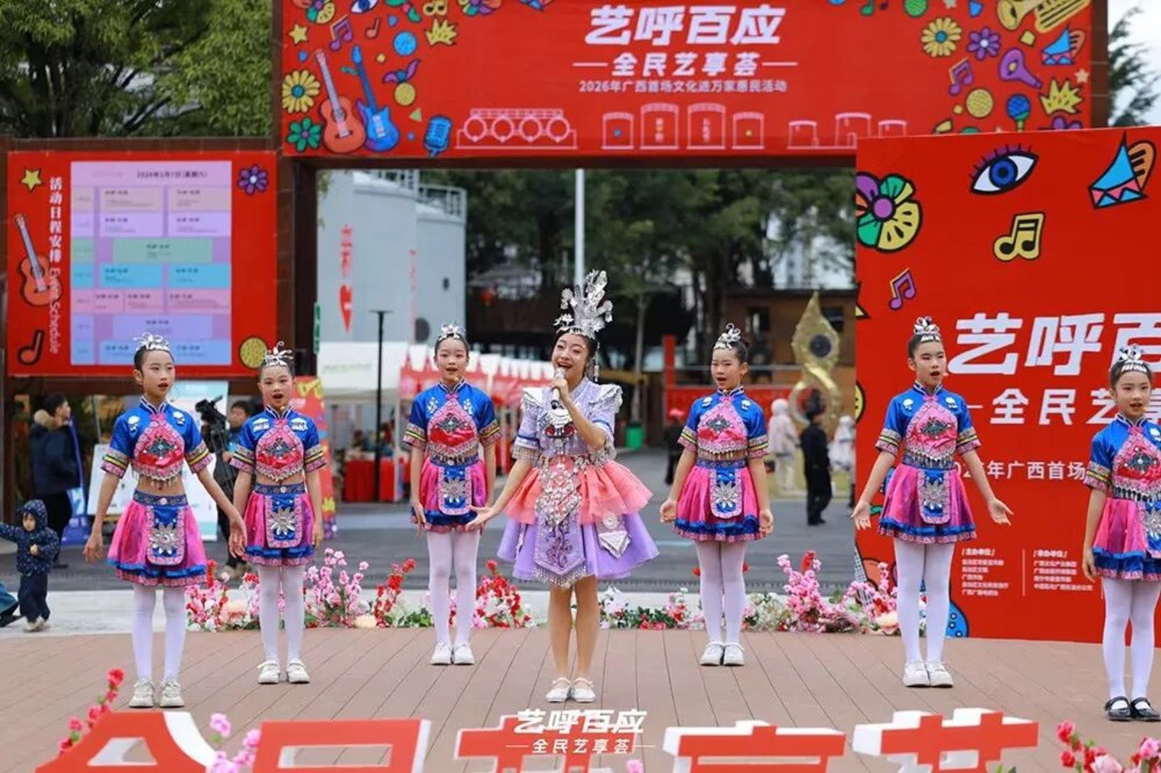 2月7日,由自治区党委宣传部、自治区文联、广西作协、自治区文化和旅游厅、广西广播电视台共同主办的“艺呼百应”全民艺享荟——2026年广西首场文化进万家惠民活动,在南宁市“新阳·石化里”美好生活街区精彩上演,为市民群众带来了一场兼具文化底蕴与烟火气息的视听享受,以文艺之力传递新春暖意,推动优质文化资源下沉基层。