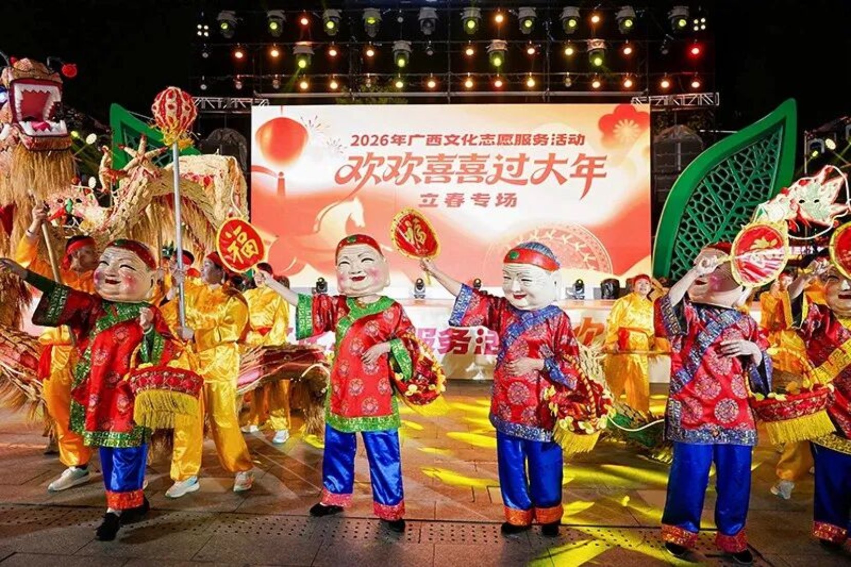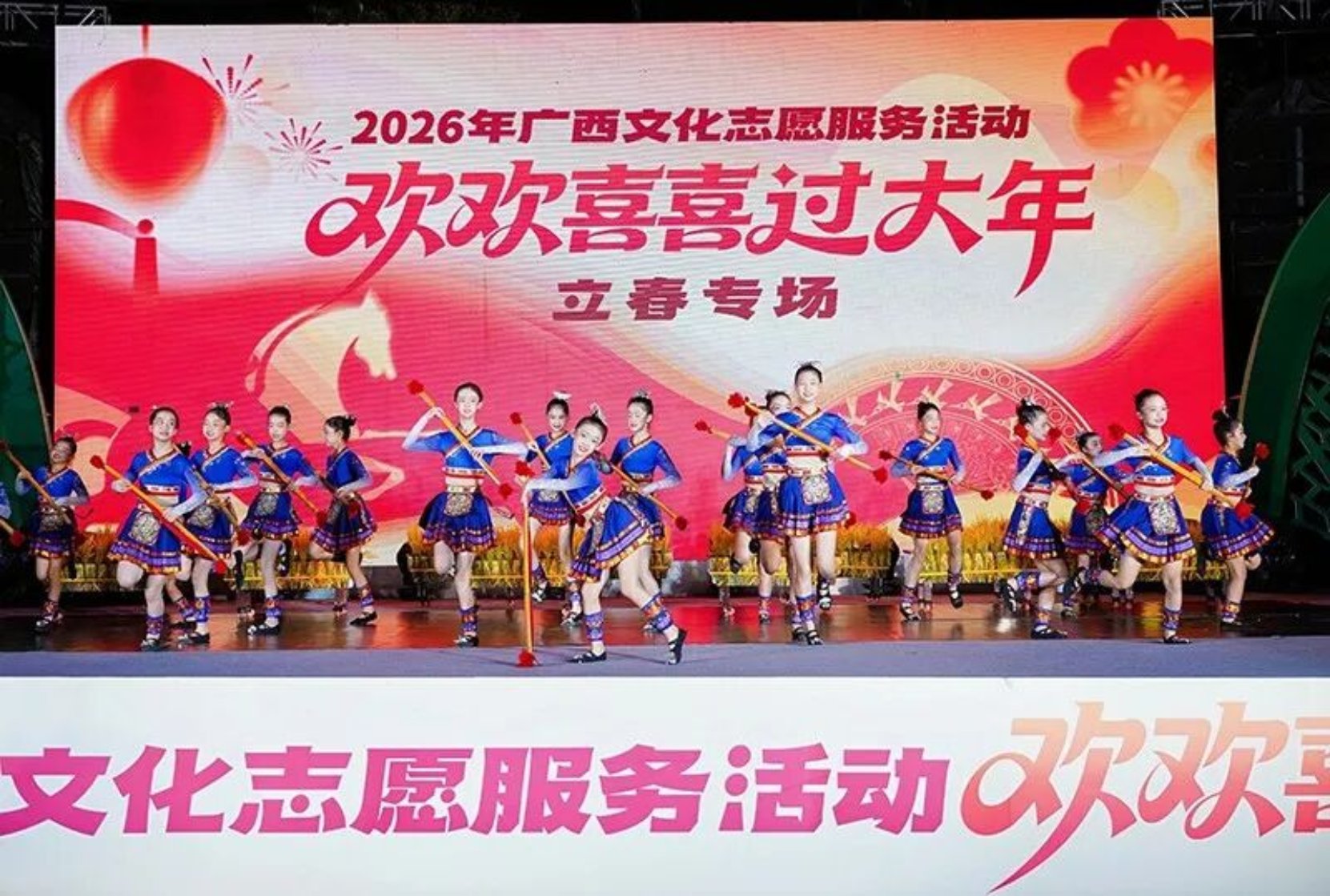 立春时节,春潮涌动八桂大地,广西文化志愿服务活动“欢欢喜喜过大年”立春专场在南宁举行。本次活动由广西群众艺术馆主办、南宁市群众艺术馆承办,南宁各县(市、区)文化馆联合执行演出。全区各设区市群众艺术馆文化志愿服务专项负责同志齐聚现场,以文艺为媒、以志愿为桥,推动优质文化资源直达基层,奏响八桂新春文化惠民新乐章。