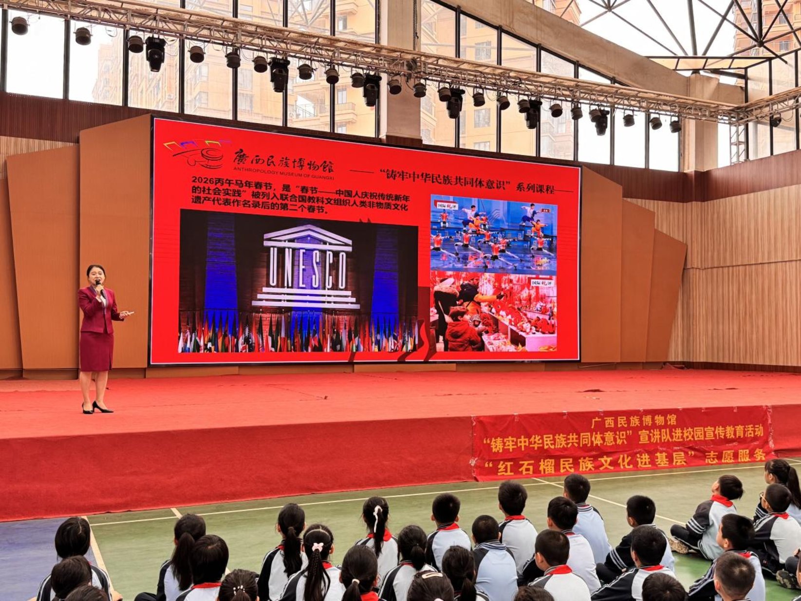 春风拂面,号角吹响。新的一年,广西民族博物馆“铸牢中华民族共同体意识”宣讲队再度启航,以龙马之精神,通过科技赋能,策马扬鞭,继续行走校园,将博物馆的社会教育服务送到更多孩子身边,播撒铸牢中华民族共同体意识与文化自信的种子,共同谱写馆校发展的新篇章!