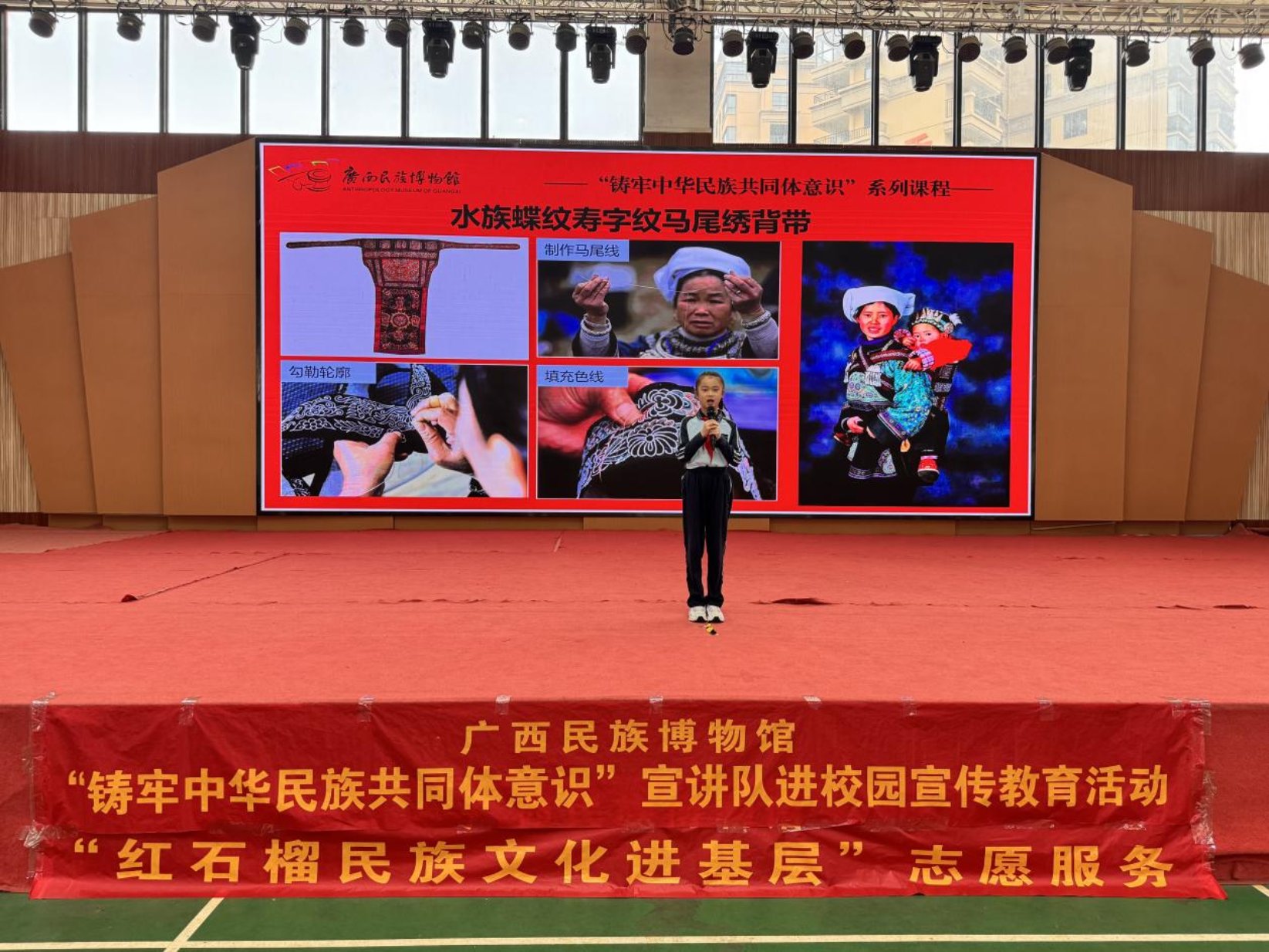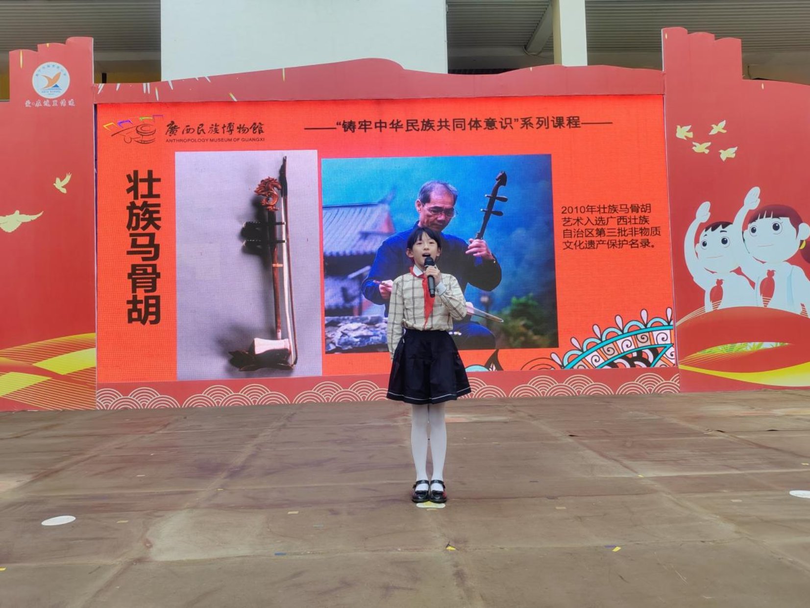活动中,学校的四位红领巾代表科普了广西民族博物馆收藏的与马相关的文物。他们用童真的语言、真挚的情感,讲述着文物背后的故事,传递着民族文化的魅力,让同学们在心中种下民族认同与文化自信的种子。