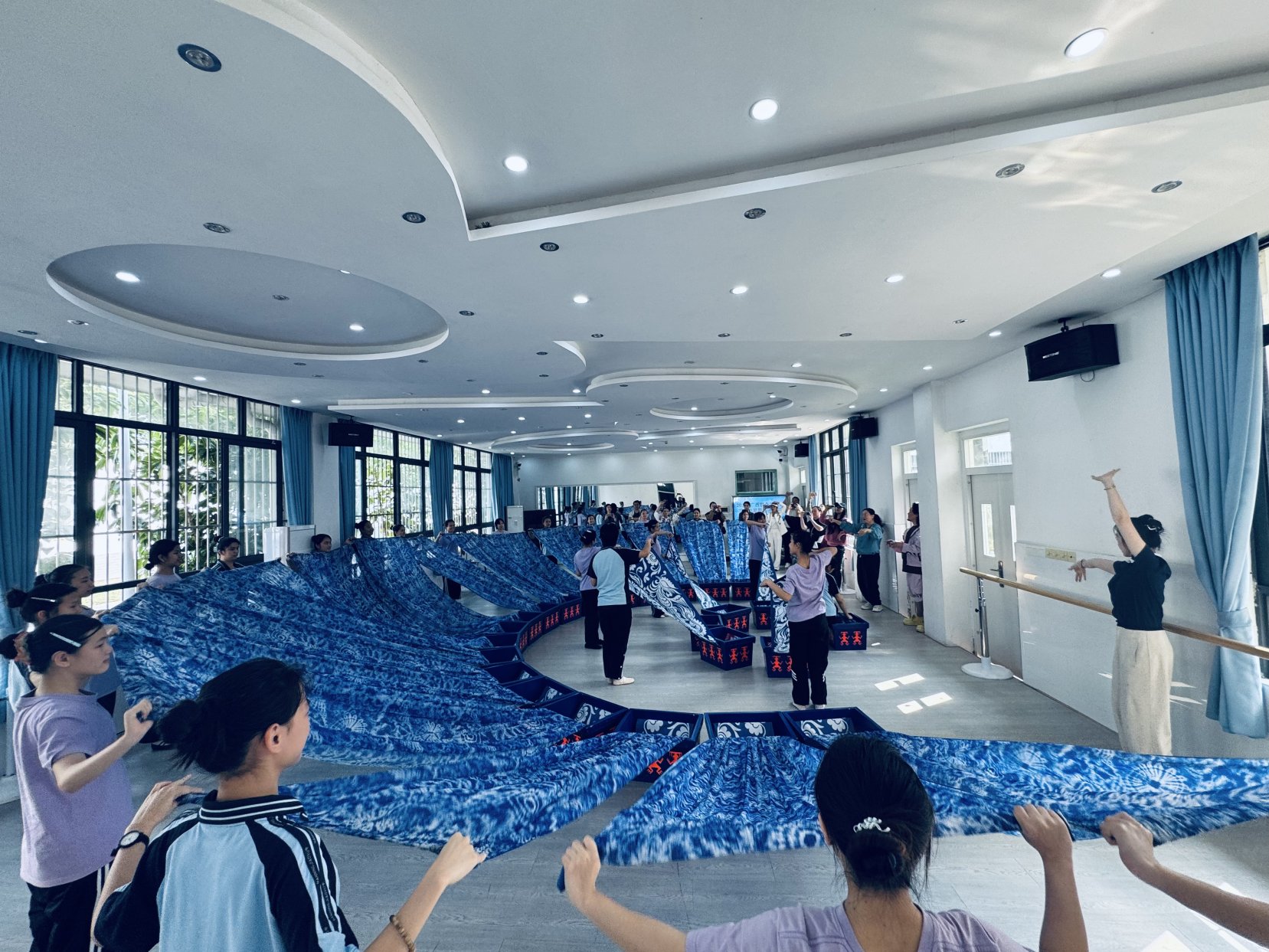 复排间隙,文化志愿者与学校相关负责老师举行专题座谈会。会上,志愿者详细分享了《锦上添花》作品创排的思路理念、编排技巧以及舞台呈现的核心要点,并结合全国汇演的评审标准,为节目后续的优化提升提出了切实可行的建议。覃祉幸围绕舞蹈创编技法、特殊群体舞蹈教学等重难点问题,与学校教师展开深入交流,分享自身多年的教学经验与创编心得,为学校艺术教育工作提供了专业指导。