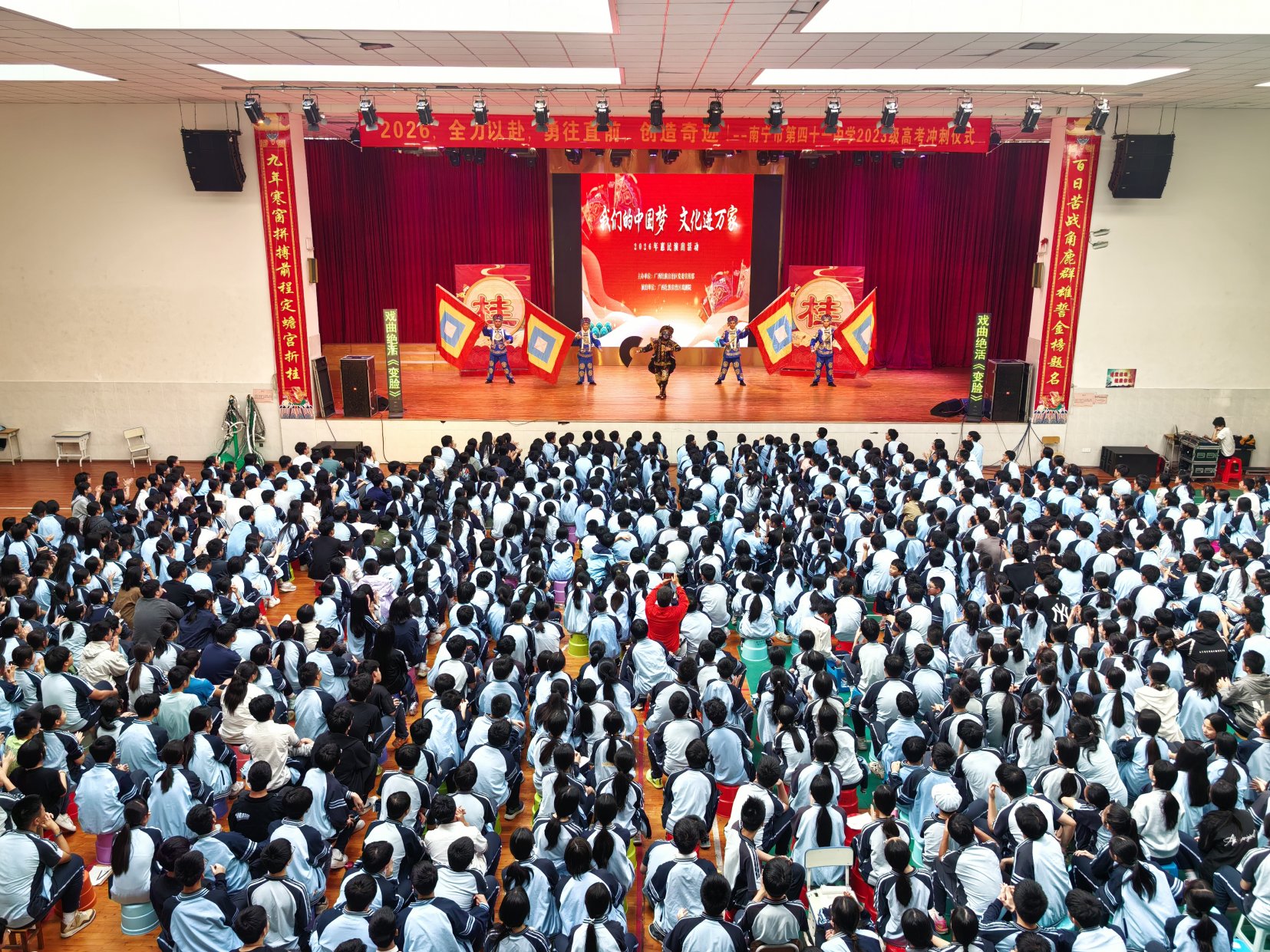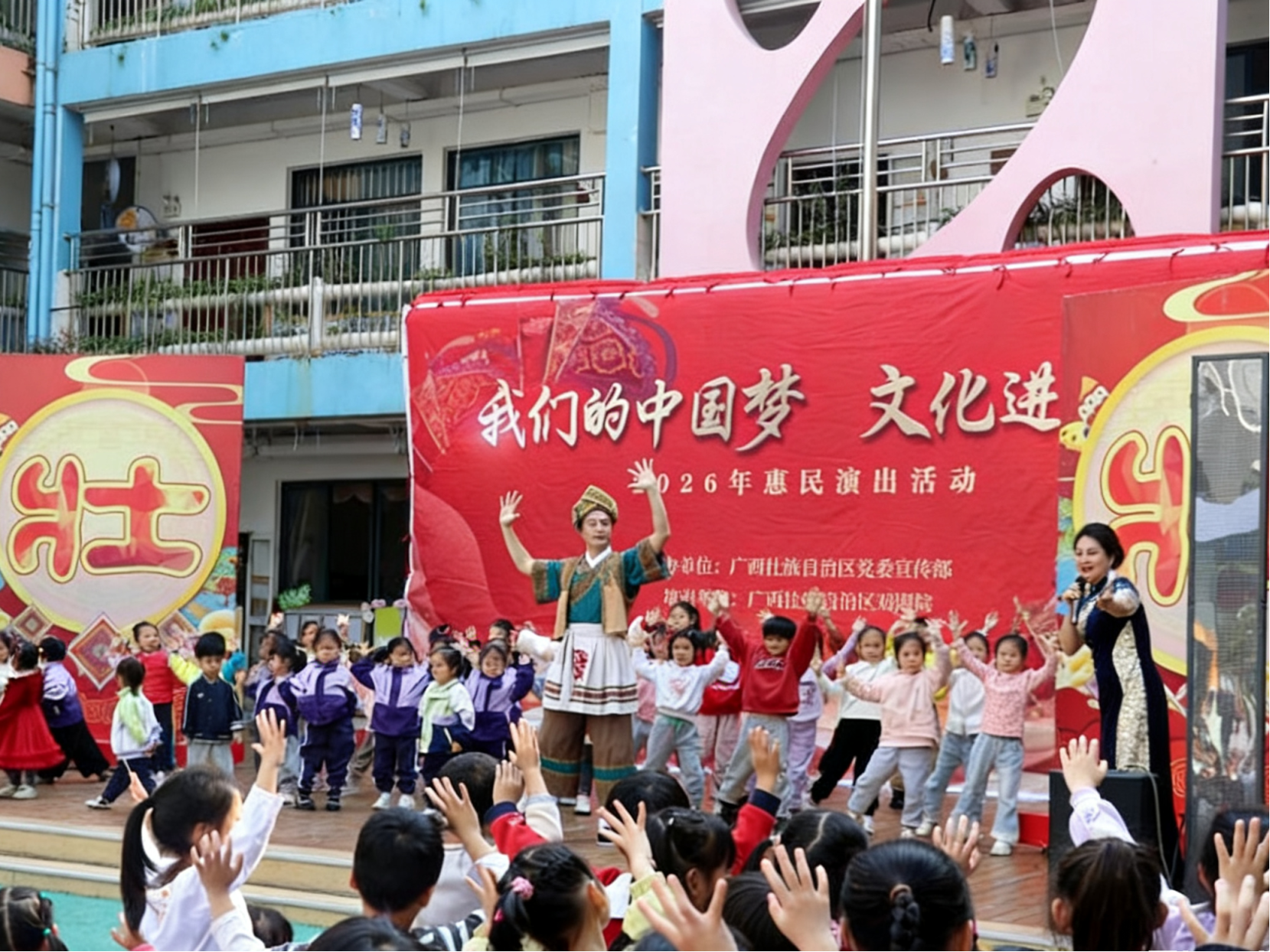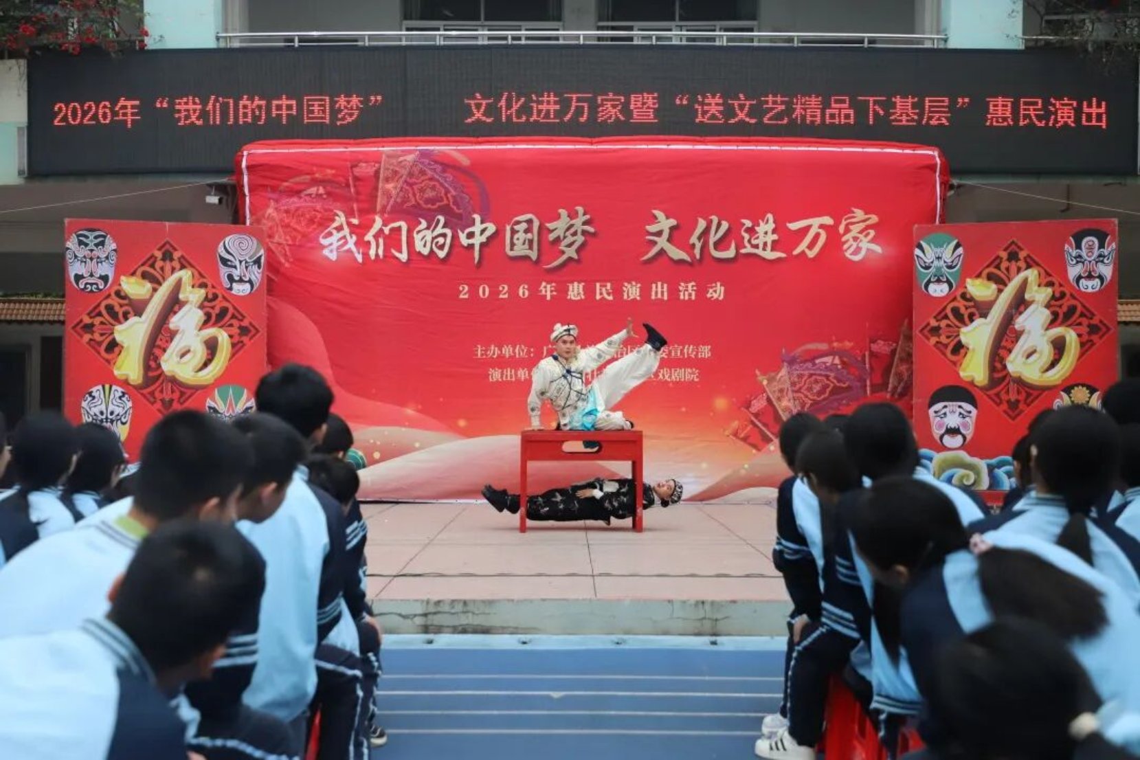 三月春光正好,邕城校园戏韵芬芳。由自治区党委宣传部主办、广西戏剧院承办的2026年“我们的中国梦——文化进万家”惠民演出走进南宁市中小学校,为广大师生奉献了多场精彩演出。