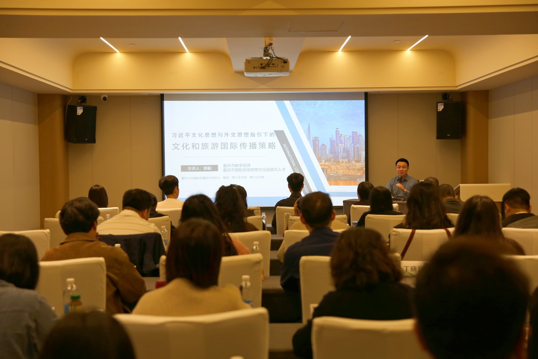 郭毅教授在讲授《习近平文化思想与习近平外交思想指引下的文化和旅游国际传播策略》