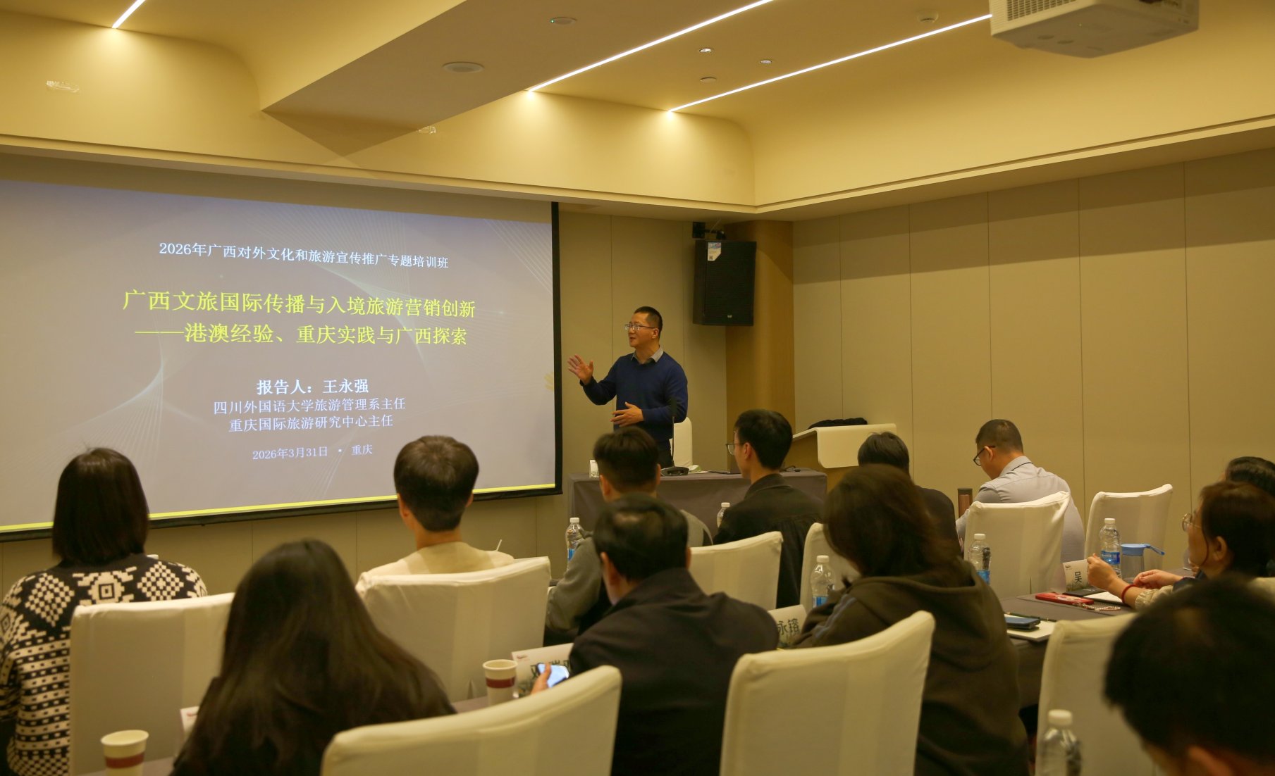 王永强教授在讲授《广西文旅国际传播与入境旅游营销创新——港澳经验、重庆实践与广西创新》