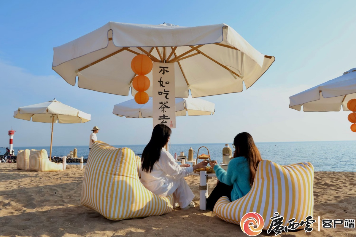 游客在广旅·白沙湾国际康旅度假区的沙滩上围炉煮茶。广西旅发防城港投资有限公司供图