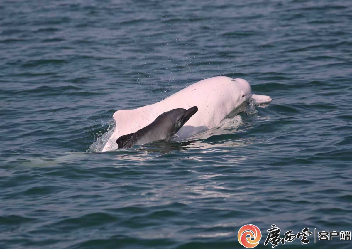 “快看!粉色的海豚!”近日,在钦州三娘湾海域,几头被誉为“海上大熊猫”的中华白海豚跃出碧波,溅起晶莹浪花,引得船上游客阵阵欢呼。