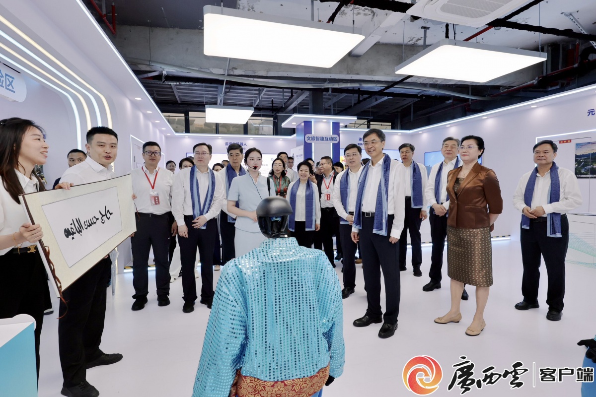 陈刚、韦韬、孙大伟等来到“智启未来・AI岛”,近距离感受人工智能赋能千行百业的生动实践。广西云-广西日报记者 黄克 邓华 摄